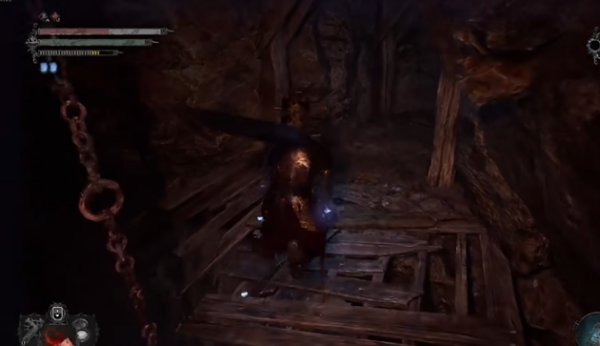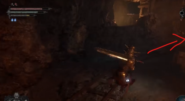 7、走到图中位置使用提灯或从里世界通过悬崖。