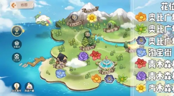 奥比岛七色花一共有七朵花,这些花的位置较为分散,其中在奥比广场就分布着橙,绿,黑色这三个颜色的花朵,接着来到淘宝街和青木森林找到剩下的即可。