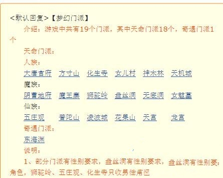 包含了大唐官府,方寸山,化生寺,女儿村,神木林,天机城等六大门派。