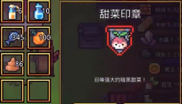浮岛冒险甜菜印章是一个非常重要的道具资源,可以用来召唤暗黑甜菜boss,玩家可以购买一个有暗黑精的土地,接着向里面的boss发起对话和挑战就可以得到印章了。