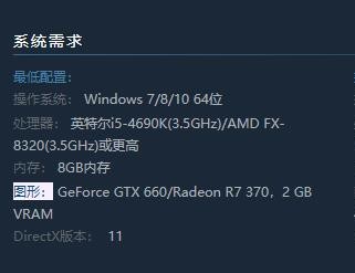 答:最低也要GeForce GTX 660 / Radeon R7 370 with 2 GB VRAM。