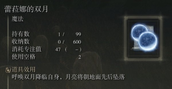 艾尔登法环dlc蕾菈娜的双月是双月骑士的魔法,游戏中的魔法必须使用法杖才能释放,并且玩家也要有足够的法力进行使用,不同的魔法释放出来的效果不同。