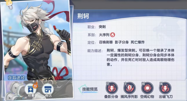 破晓序列荆轲在突刺中的强度排行在T3,系别为火序列长出现在或阵容中作为召唤角色使用,有着爆发能力且召唤的分身跟自身是一样的有一定属性,死亡看造成高额伤害。