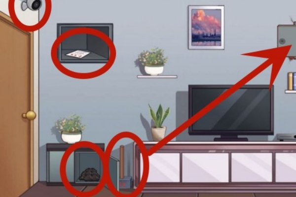 脑洞茬里王左右为难这一关首先出现的两个选项,选择任意一个继续游戏,然后利用放大镜左右滑动,找到所有可疑之处即可通关,比如摄像头和旁边的暗格,地毯下面的纸。