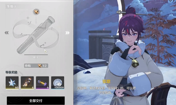 4、然后就可以完成山间琴音任务,并且解锁定风铎商店,交付定风铎可以提升等级,获得奖励。