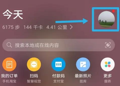 1、轻触屏幕,向右滑动至负一屏,点选账号头像。