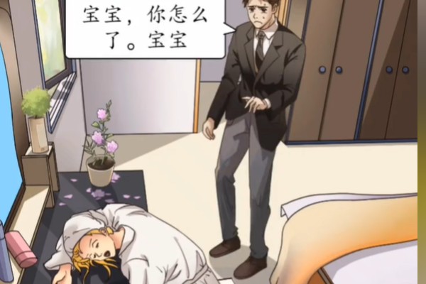 场景三:丈夫脖子上有口红印记、鞋底有泥巴、肩膀有花瓣、保险单、药瓶。