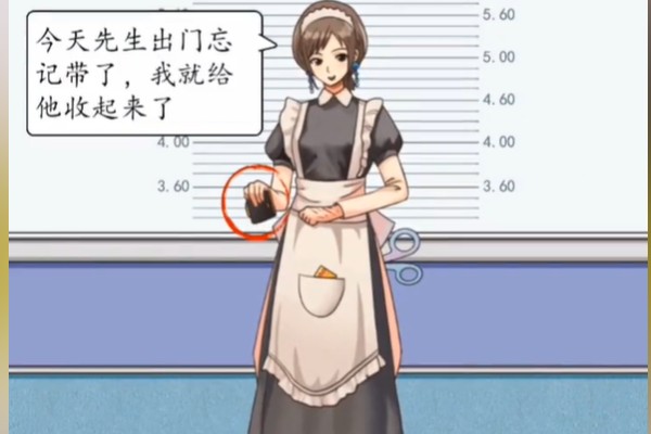 场景四:女仆割伤的手、男士钱包里面有两人的合照,钻石耳钉、口袋有剪刀。