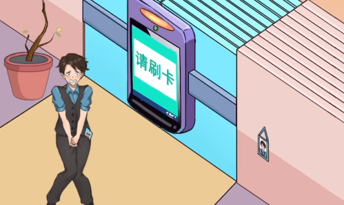 1、帮助想去厕所的男人打开所有的大门,先使用墙上的卡片刷卡。