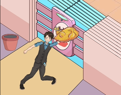 4、将招财猫给门,再是厕所架子上的高数,推倒花盆得到金币投进入。