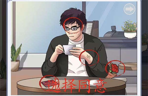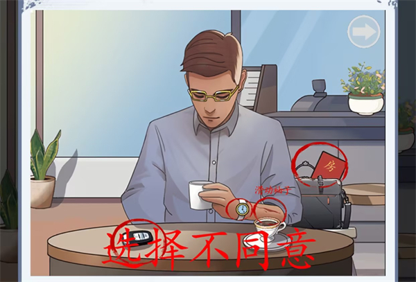 3、向右滑动男生的手腕袖子,点击伤口,选择不同意。