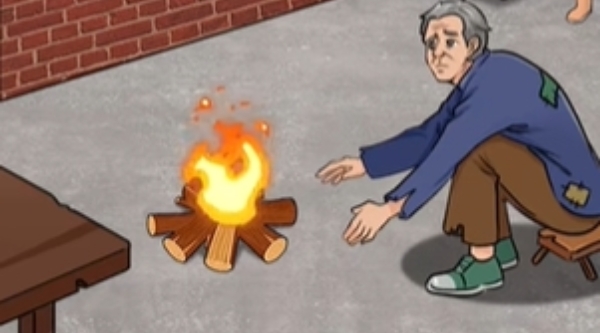 先把钱拖动到火堆中更换成电暖扇,接着把钱拖动到奶奶和爷爷身上,最后补家具即可。
