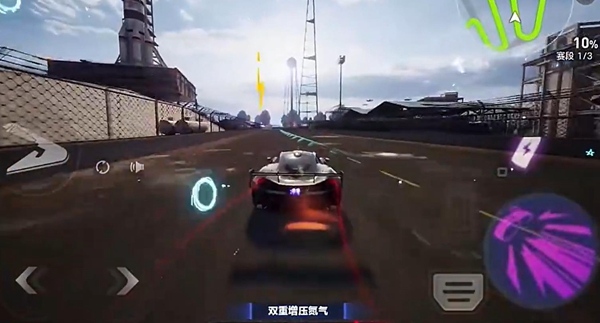 3、玩家还可以在漂移过程中,点击刹车,然后按下氮气瓶,可以获得强力加速。