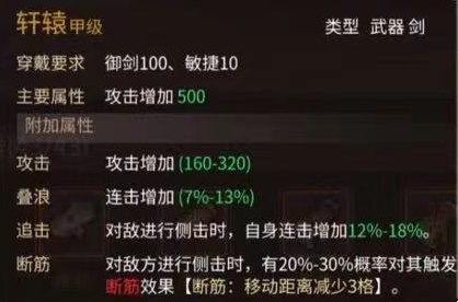 3、攻击时有一定概率造成破绽效果,其次是轩辕达到一百敏捷为10佩戴。