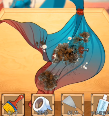 4、清理沙子,接着使用镊子夹出钉子再上药膏使用绷带包扎即可通过。