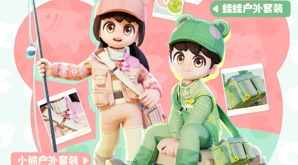 女生的是小熊户外套装,整体是粉色系,男生的是蛙蛙户外套装,整体是绿色系。