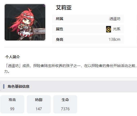 艾莉亚拥有一头火红色的头发,身高只有138cm,给玩家带来一个灵动可爱的感觉。