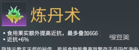 炼丹术的品质是紫色魂玉,需要通过食用果子的方式来增加角色的近抗效果。