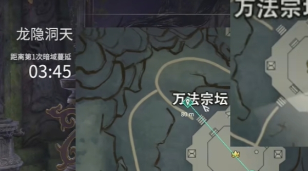 接着按照图中标记的位置,向北出发一直来到万法宗坛的最北面位置。