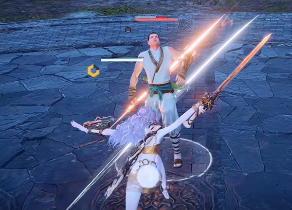 永劫无间蓄崩山斩是一个简单容易上手的连招技能,有时甚至能一刀秒杀对手,先使用长剑升龙将敌人打到空中进入僵直状态,再使用滚轮切刀借助钩锁蓄力攻击即可。