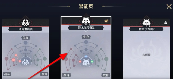 3、在潜能页面,每位英雄都有三个潜能可以自由设置。
