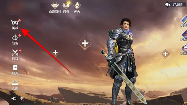1、玩家进入游戏后,点击主界面左侧的英雄。