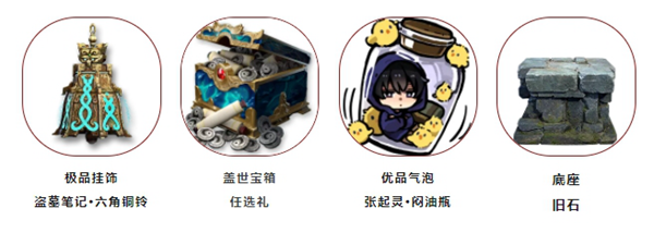 奖励包括张起灵专属极品挂饰【盗墓笔记·六角铜铃】、盖世宝箱任选礼、张起灵表情气泡,张起灵专属底座等。
