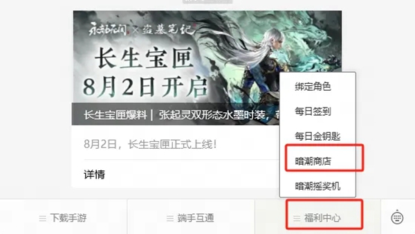 暗潮商店是永劫无间中的一个商店,玩家可以在暗潮商店中兑换各种奖励,暗潮商店的具体位置是在永劫无间的公众号中,打开公众号,点击福利中心,即可进入暗潮商店。