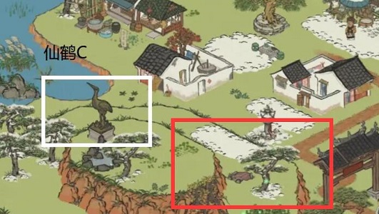 3、您需要在徽杭古道的11点钟方向找到仙鹤和牌坊之间的区域,在此处便可找到第三把钥匙的位置。