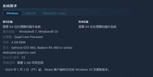 抓抓地牢作为一款2D画面的肉鸽风格游戏,它对硬件的需求并不苛刻,游戏的最低配置中,显卡需求被设定为GTX660,此外,游戏仅需2GB的硬盘空间,普通电脑便能轻松安装并享受游戏乐趣。