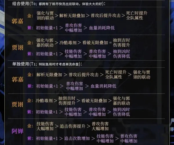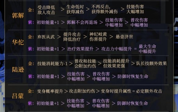 金:技能消耗能量-1>同生共死提升全队攻击=技能提供护盾 >提升全队攻击但受伤提升。
