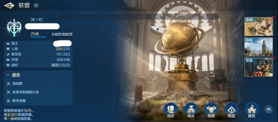 1、当联盟核心玩家发起奇观建设后,所有成员都会参与进来,共同完成任务以加快进度。