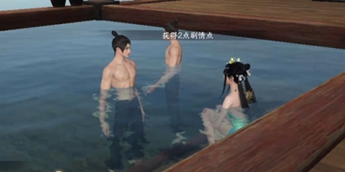 4、将失物携带至澡堂内部的浴池内,寻得武昭先生,然后归还其失窃的钱袋。