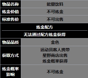 能量饮料有3种获取方法,客人身上携带、星野商店出售和炼金获得。