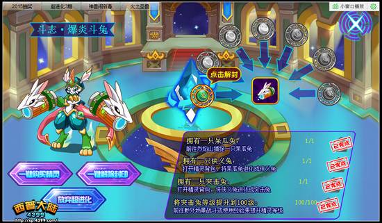 使用爆炎火箭筒可以让突击兔进行超进化,进化成斗志爆炎斗兔。