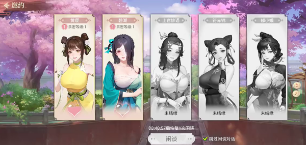 江湖如梦邀约是跟角色之间的一种互动,玩家进入游戏后就可以在主界面看到邀约,进入就可以查看可以邀约的角色,以及与他们之间的亲密等级达到特定亲密度即可邀约。
