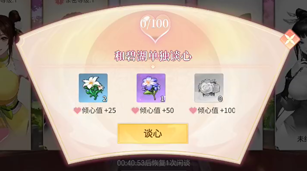 3、接着选择要邀约的角色,点击谈心赠送物品就可以开展剧情。