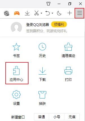 1、点击右上角的设置,再点击下面的应用中心