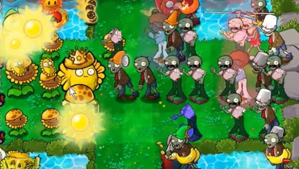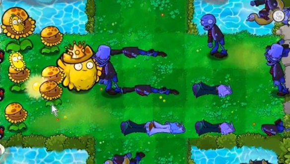 2、泳池里面种植向日葵女王,两边分别种植一个坚果来进行守卫。