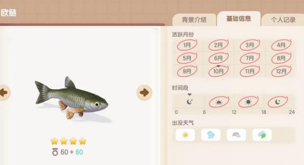 1、欧洲鲶鱼在游戏内称之为欧鲢,是一个四星的鱼类。