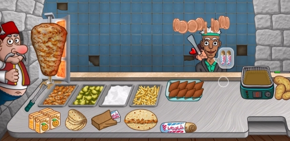 沙威玛传奇里的食物都是放置到饼上进行制作,每个顾客的点单都不一样,选择合适的食物进行制作并卖给顾客来获取收益,通过经营店铺完成各种任务提升游戏进度。