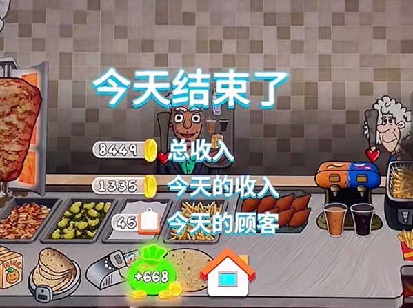 当客人在台子上留下金币之后玩家需要及时点击,将其收纳到当日的收益里。