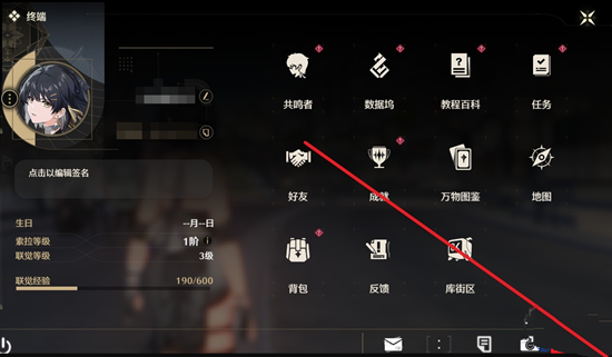 1、完成主线剧情的序章后,在主界面点击右上角的第一个图标以进入终端界面。