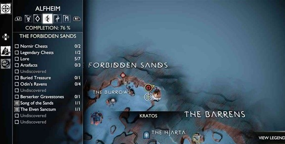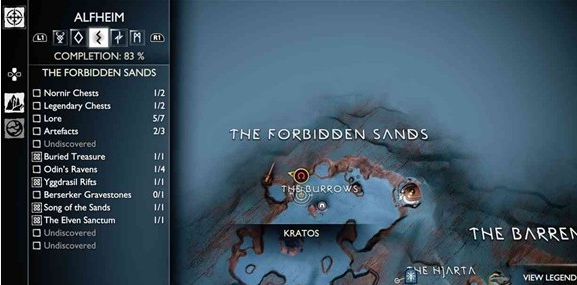 战神诸神黄昏禁忌沙原区域非常的大而且可以收集的东西也比较的多,有些物品是在一块的玩家寻找的时候可以一块拾取,支线任务涉及的机关多要注意解密。