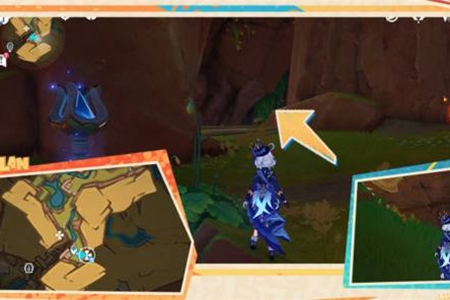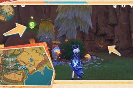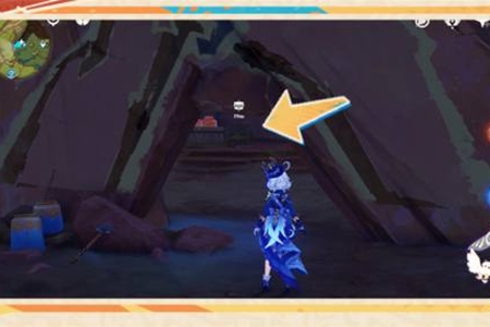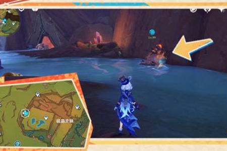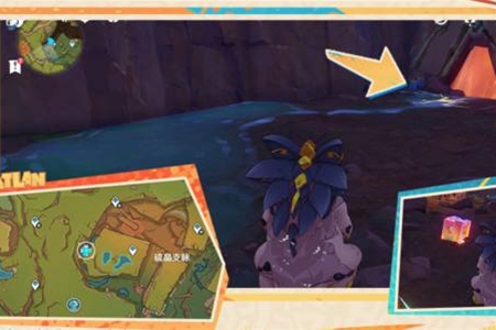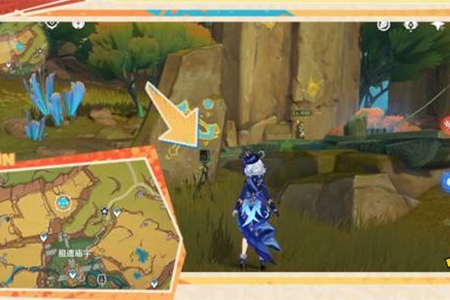 6、继续向南前行,击败洞口怪物,普攻地面裂缝,共鸣出现的晶体(普攻)。
