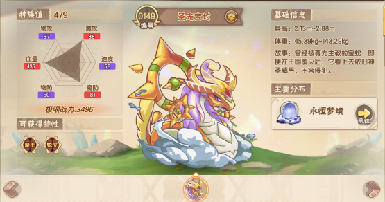 1、玩家找到野外后可以挑战从而提升战斗能力,例如圣光宝蛇。