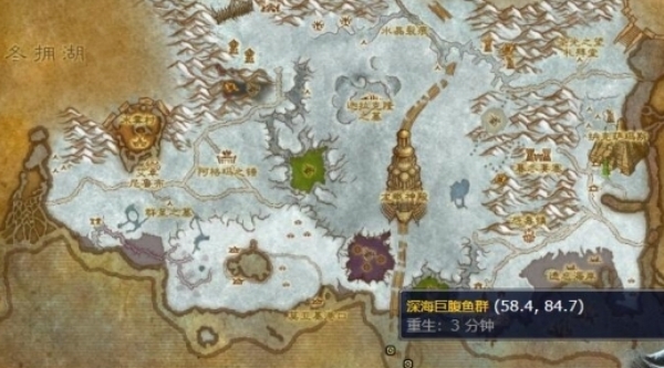 魔兽世界深海巨腹鱼群位置在北风苔原的(80.7,57.4)位置,玩家可以乘坐坐骑或者是利用传送装置到达该地区,利用钓鱼玩法获得珍稀的鱼类以及其他的物品。