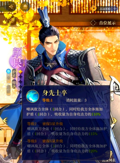 颜良是四星角色,叠星会比较方便,血量高,能很好的抗伤害。