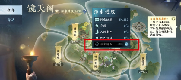 2、80个浮影镜石需要到达不同坐标进行获取,主要通过战斗探索和开宝箱。