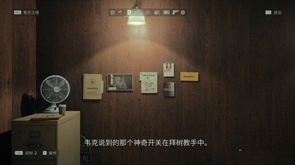 心灵杀手2第六章前往富水镇解密,玩家要与艾伦·韦克对话获取新的推理和线索,然后会有一条神教开关的线索,然后将线索都整理清楚,离开这座建筑。